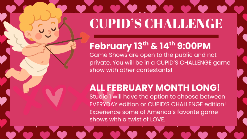 Experience a fully immersive Game Show for you, your friends, co-workers and family! Our private studios are exclusive to your group count of 6 to 16+ and features all of our main games plus more!